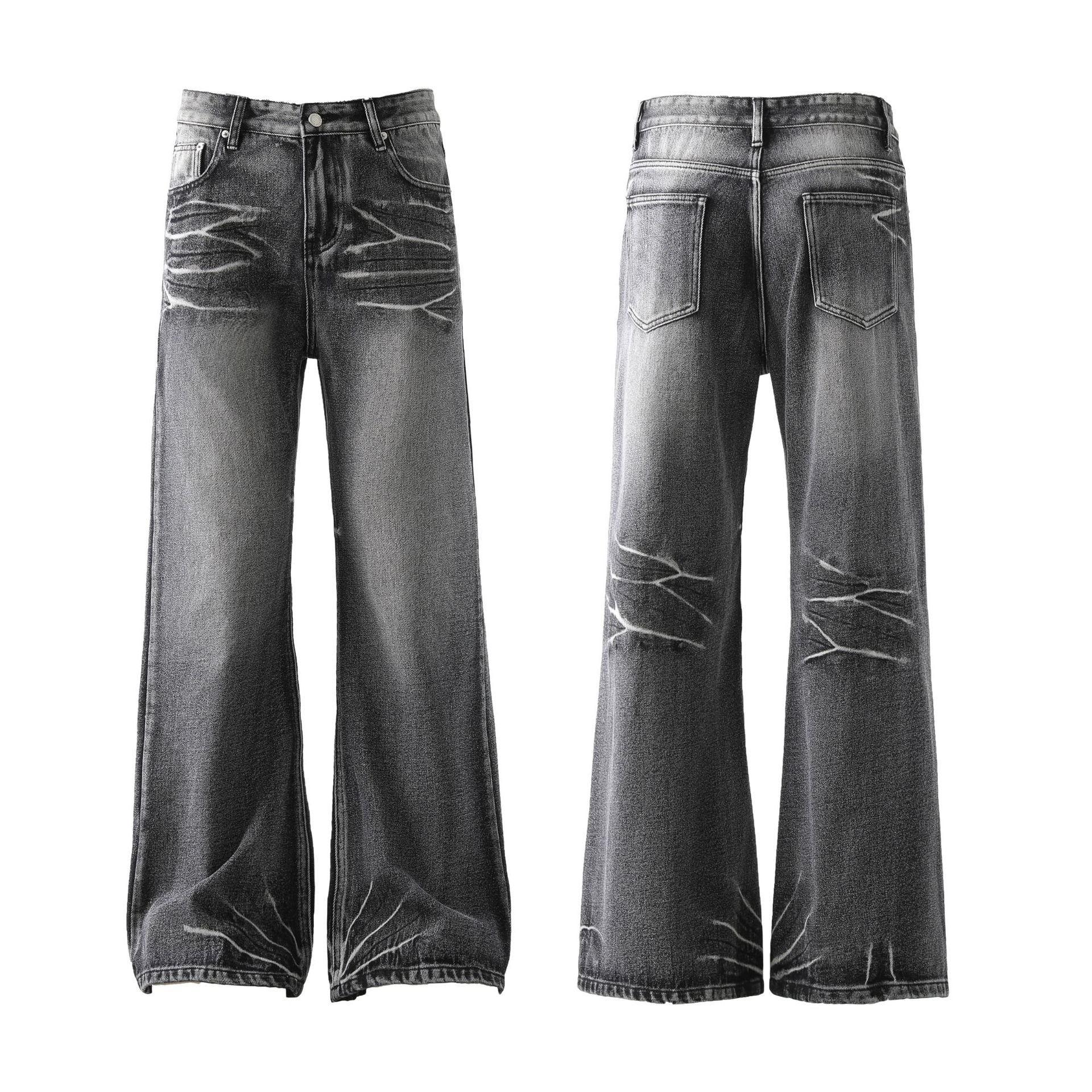Loose Micro-flared Washed Distressed Lightning Jeans
