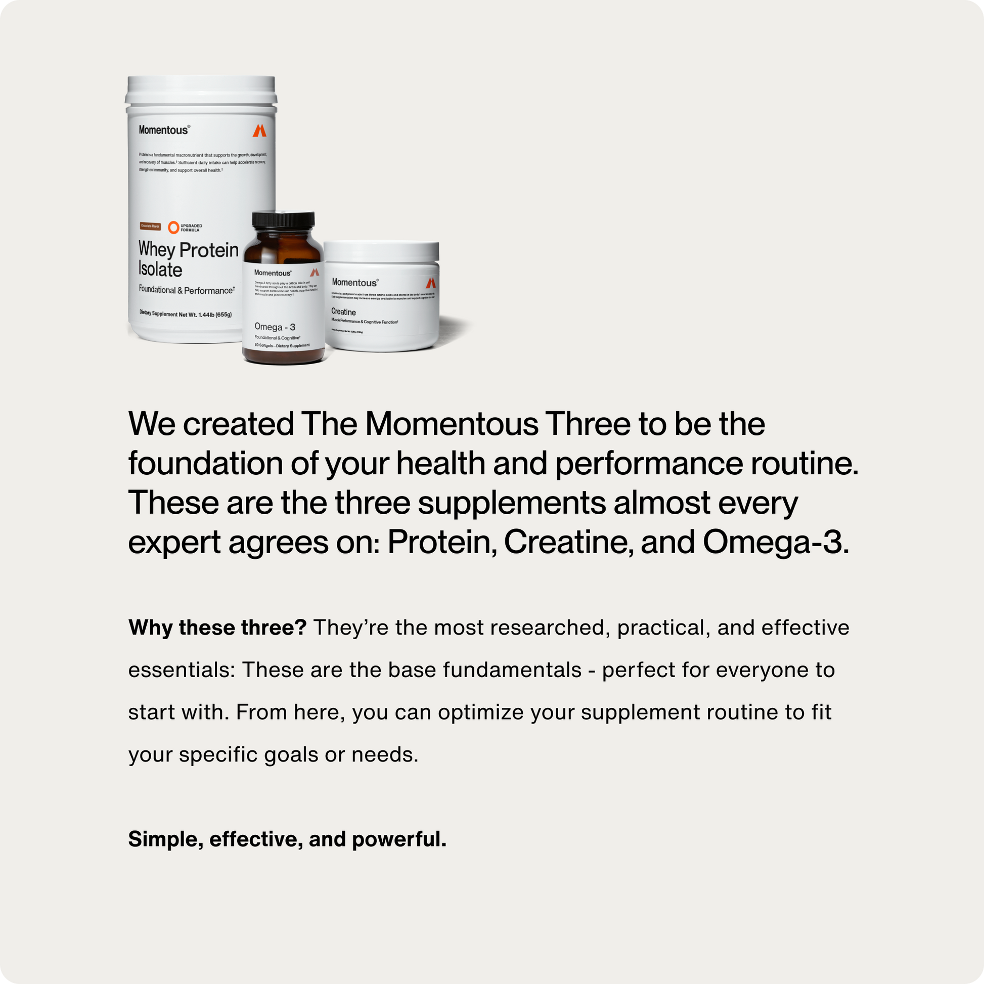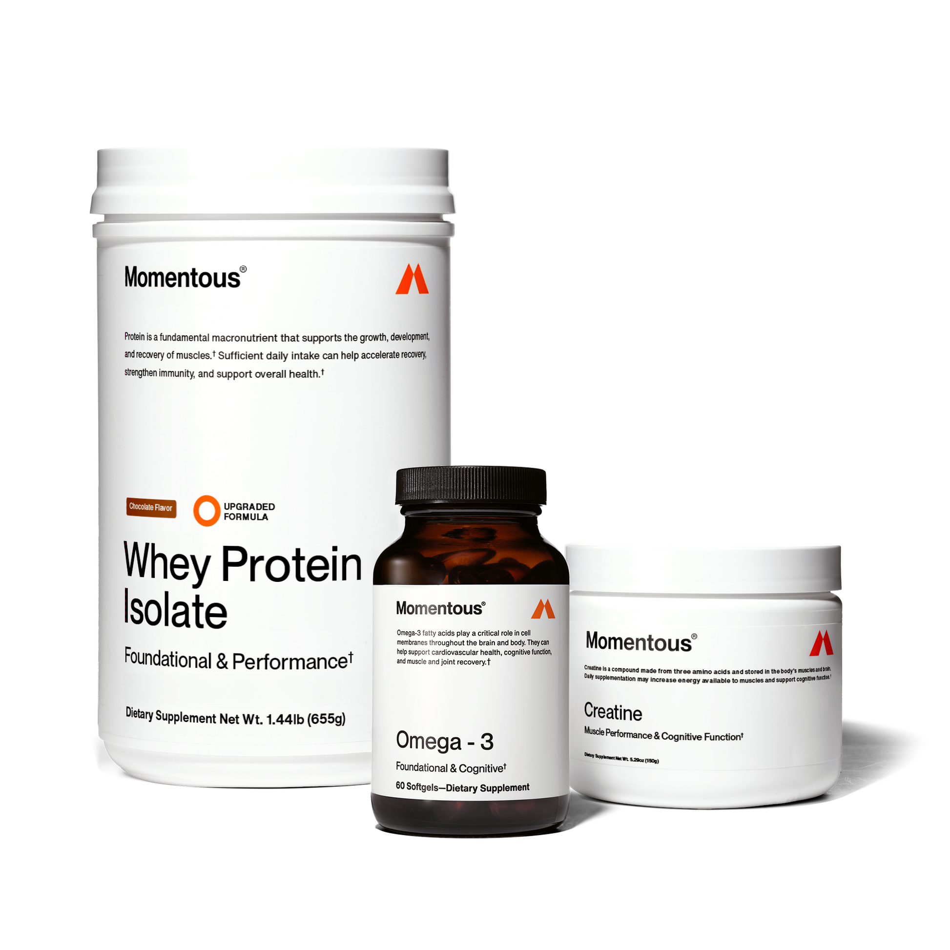Protein. Creatine. Omega-3. These are the 3 nutrients our expert research shows to be the foundation of long-term health and enhanced muscle and cognitive performance. Taken daily, this protocol supports every cellular function of the brain and body.