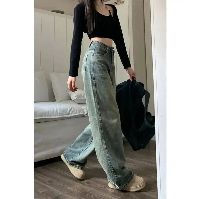 XPQBB Vintage Wide Leg Jeans for Women Streetwear High Waist Loose Straight Denim Pants Female 2024 Spring Wild Casual Trousers